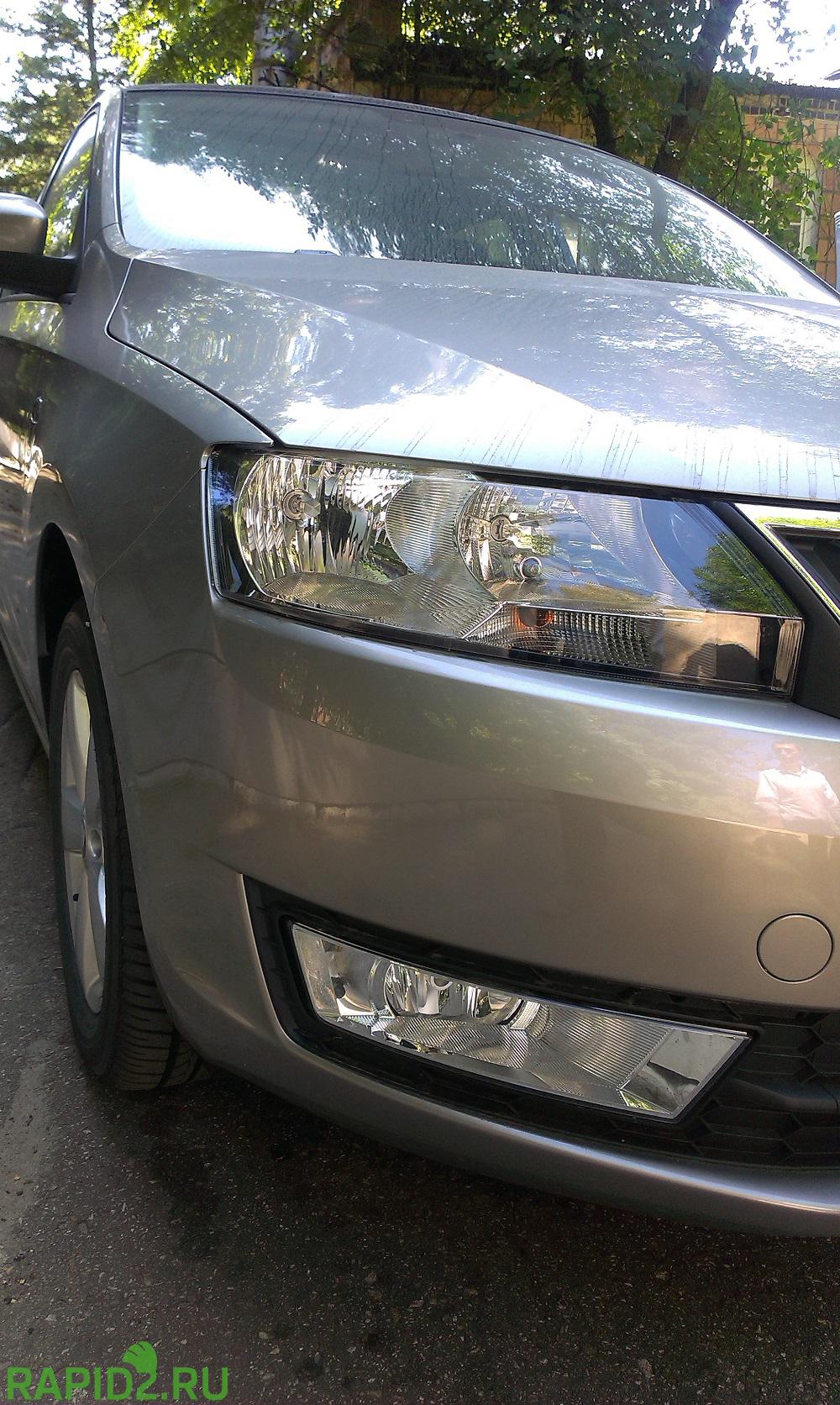 Темные фары головного свет на Рапиде